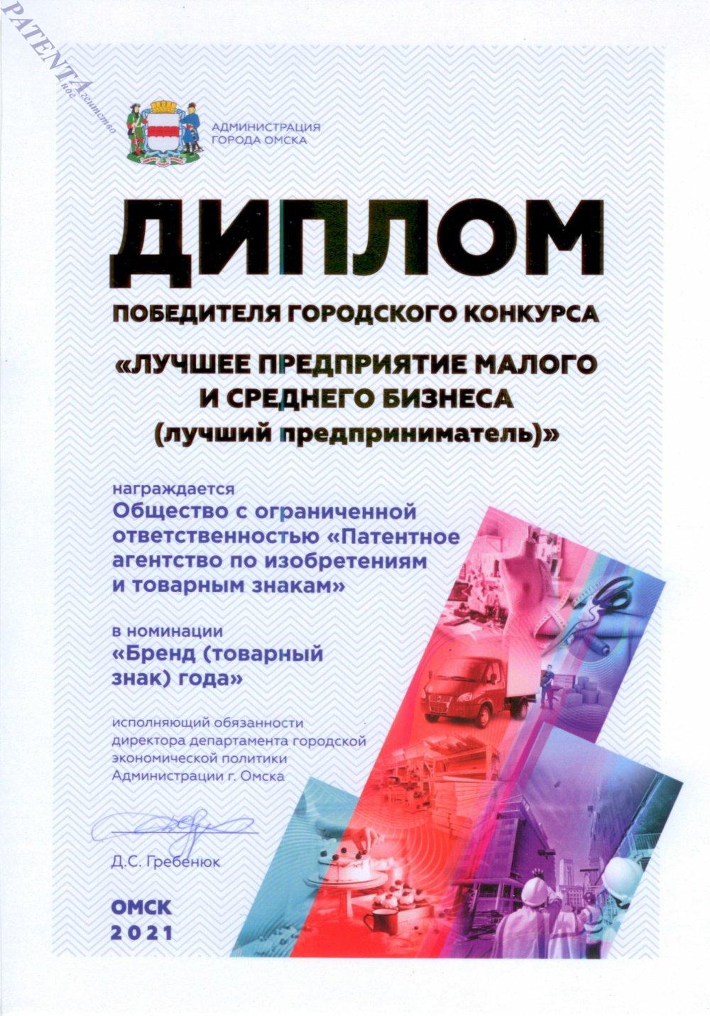 The company received the diploma of the winner of the city competition “The best small and medium-sized enterprise” in the nomination “Brand (trademark) of the year”